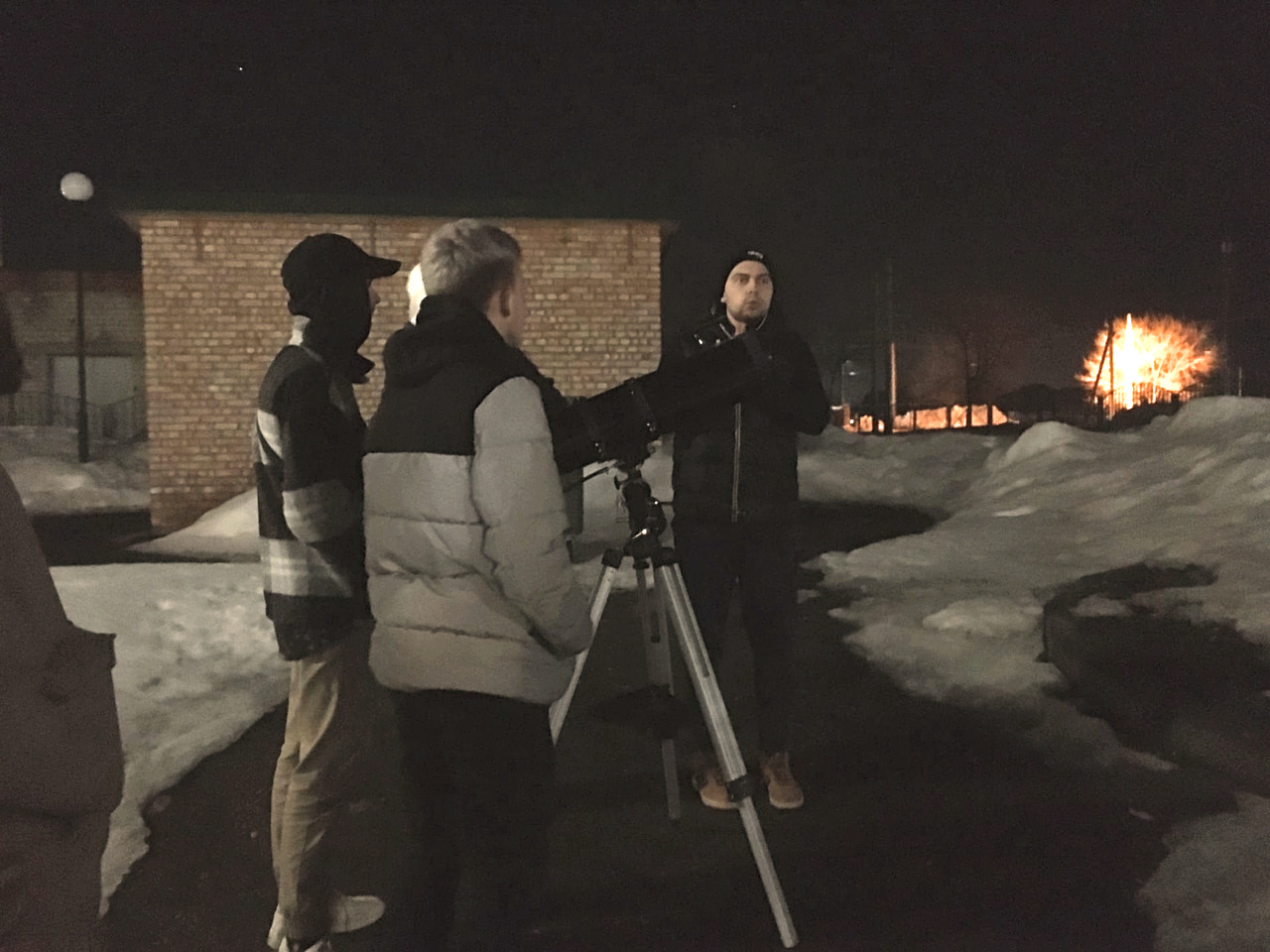 Ученики смотрят на звёзды с Александром. Фото Елены Лутовой.
